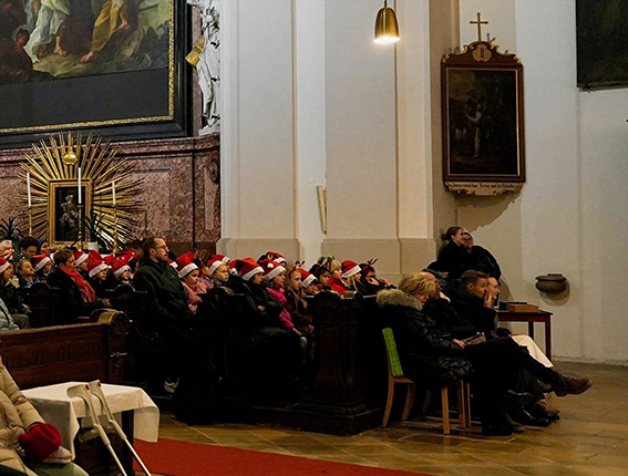 Einstimmung auf die Weihnachtszeit, zusammen mit den Kinder der Europäischen Volksschule Neustiftgasse und dem Ehrengast Beatrix Neundlinger mit Gesang und Lesung. Begleitet wurde sie an der Mandola von Peter Marnul.