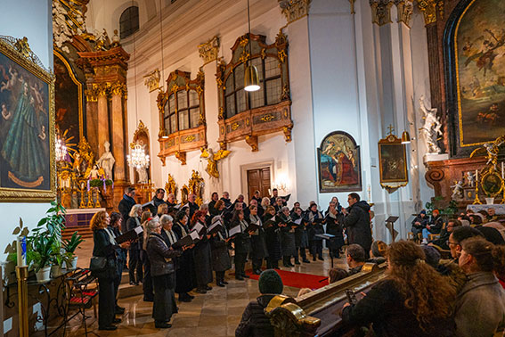 Mit dem Chor Wien Neubau haben 10 Gesangssolisten, ein Cembalist und ein Streichorchester an der Aufführung mitgewirkt.